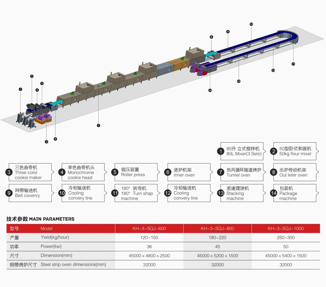The production line adopts automatic equipment configuration,using automatic feeding machine, cookie extrusion cutting machine,can produce two-color cookies, falitz cookies.supporting tunnel oven or rotary oven, oven cooling conveyor line.supporting chocolate bottom pouring machine, cooling tunnel furnace, cooling chocolate paste, cooling conveyor line after conveying cookies, and then manually put the cookies into the tray. Enter the entire production process of the packaging machine.